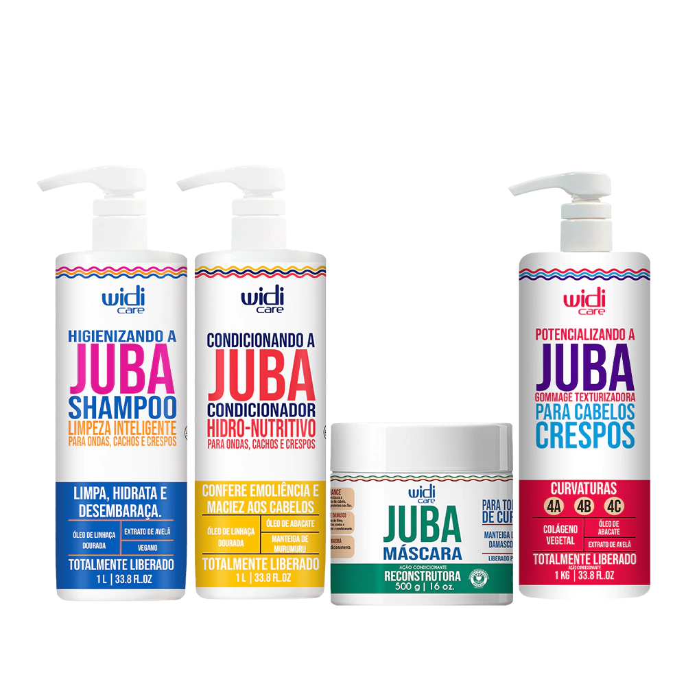 | como usar | Shampoo: Aplique o shampoo nos cabelos molhados, massageando o couro cabeludo e distribuindo-o pelos fios. Deixe agir enquanto espalha a espuma por todo o comprimento do cabelo e, em seguida, enxágue completamente. Condicionador: Após lavar os cabelos com o Higienizando a Juba Shampoo, aplique uma pequena quantidade do Condicionando a Juba ao longo do comprimento e pontas dos fios. Deixe agir por 3 minutos e enxágue bem. Para um cuidado capilar mais profundo, siga com a Máscara Hidro-Nutritiva Juba. Máscara: Depois de higienizar o cabelo, enxágue bem, retire o excesso de água e aplique uma quantidade generosa nos fios úmidos, enluvando-os bem. Deixe agir de 5 à10 minutos, com ou sem calor. Enxágue abundantemente e finalize como de costume. Finalizador: Aplique nos cabelos molhados e defina os cachos com as mãos, formando fitas para melhor definição. Deixe secar naturalmente ou utilize um secador com difusor. Pode ser usado sozinho ou após aplicar o óleo Juba nos cabelos úmidos. Não é necessário usar outros finalizadores. |