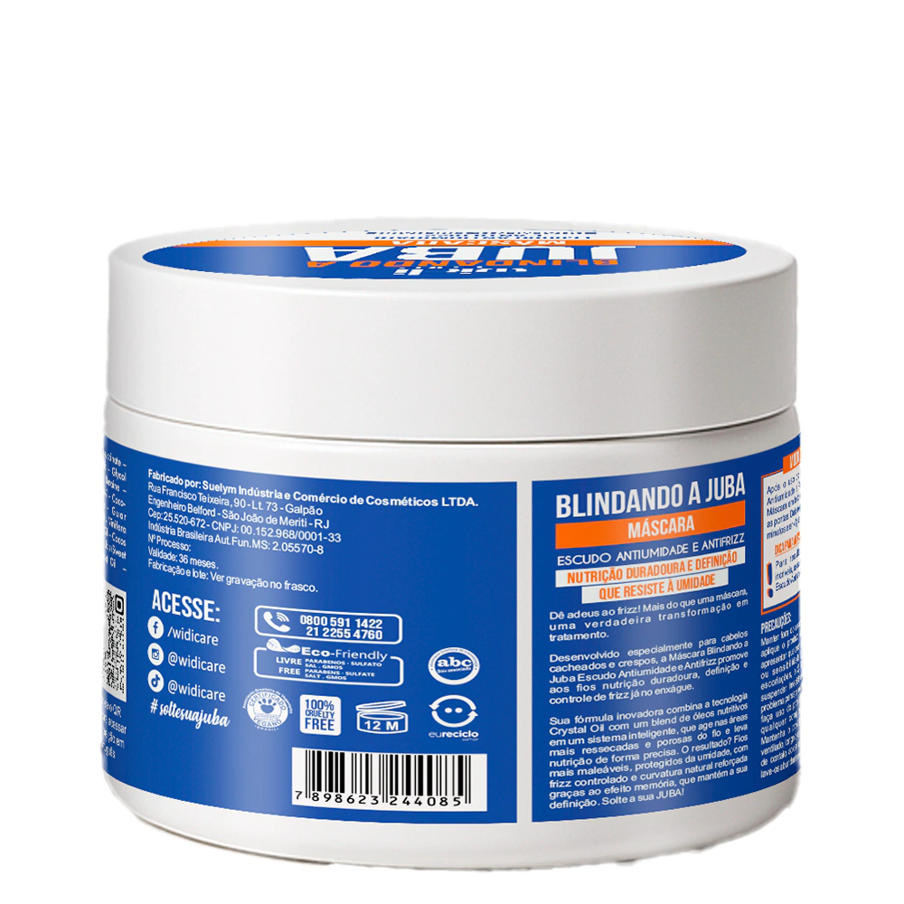 Blindando a Juba Máscara: Dê adeus ao frizz! Mais do que uma máscara, uma verdadeira transformação em tratamento. Desenvolvido especialmente para cabelos cacheados e crespos, a Máscara Blindando a Juba Escudo Antiumidade e Antifrizz promove aos fios nutrição duradoura, definição e controle de frizz já no enxágue.